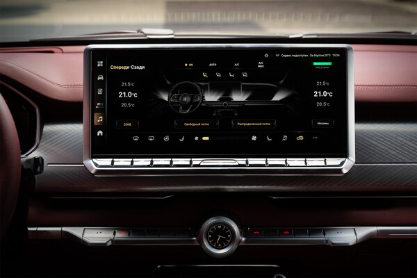 Трехспицевый руль у Tank 700 классической круглой формы, его колонка настраивается по высоте и вылету. Клавишами на баранке можно, например, регулировать звук аудиосистемы и управлять круиз-контролем. Китайцы не стали зашивать в мультимедиа все управление необходимыми опциями, поэтому можно с помощью «горячих» клавиш настроить зеркала, климат-контроль, включить подогрев сидений и поменять жесткость амортизаторов. Селекторы смены режимов движения и высоты пневматической подвески выполнены в виде «рычажка-качельки» на центральном тоннеле.