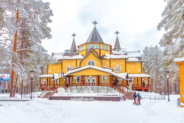 Великий Устюг — один из древнейших городов Русского Севера. Официальным домом Деда Мороза он стал в 1999 году. Сама резиденция находится в 12 км от Великого Устюга. К терему ведет так называемая тропа сказок, а в самом здании расположены 12 комнат — по числу месяцев в году.