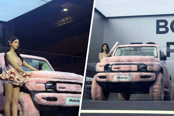 Кузов одного из представленных на стенде автомобилей даже был отделан снаружи розовым мехом.
