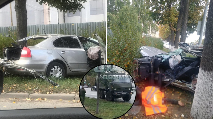 По предварительным данным, около 13 часов армейский грузовик начал разворачиваться через «двойную сплошную» около ДК им. Сайдашева. В него врезалась Skoda, водитель которой погиб практически мгновенно.