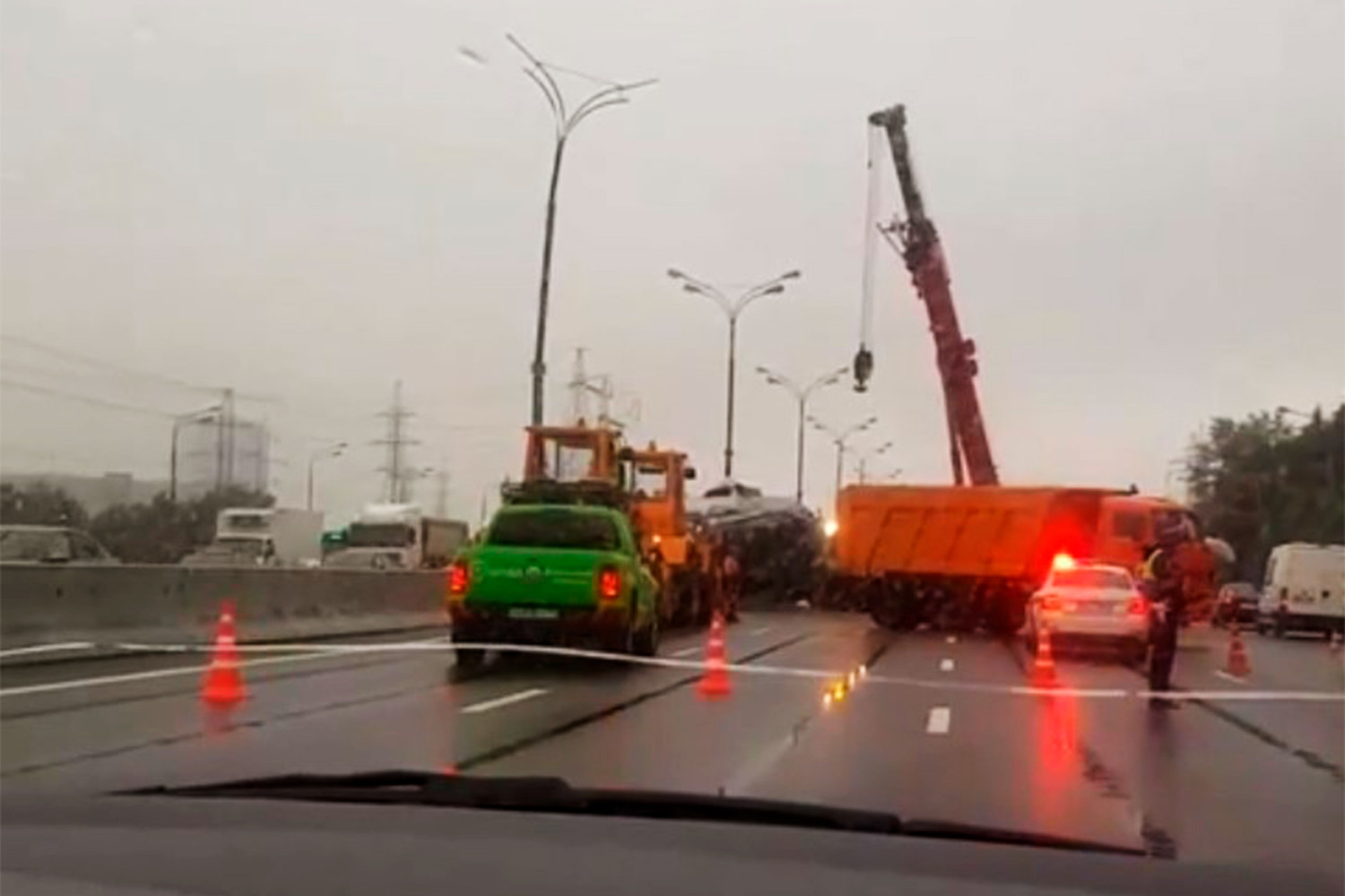 Движение на столичной магистрали ночью 29 июля полностью ограничивали в связи с разлившимся после опрокидывания грузовика битумом на внутренней стороне 48-го км. На место аварии оперативно прибыли экстренные службы, приступившие к ликвидации последствий.