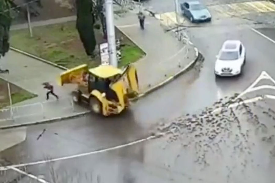 В Севастополе ребенок в последний момент успел отскочить от движущегося трактора, который сбил ограждение и вылетел на тротуар, сообщает издание «Подъем». Запись происшествия попала в Сеть.