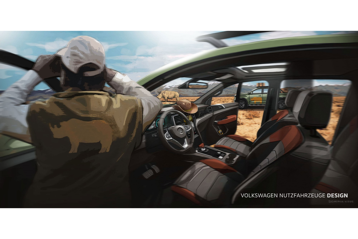Новый Volkswagen Amarok получит двухрядную кабину с четырьмя дверьми, светодиодные фары, иную решетку радиатора с толстой горизонтальной планкой, противотуманные фары и рельефный капот. В салоне появятся цифровая приборная панель, мультимедийная система с большим тачпадом селектор автоматической коробки передач.