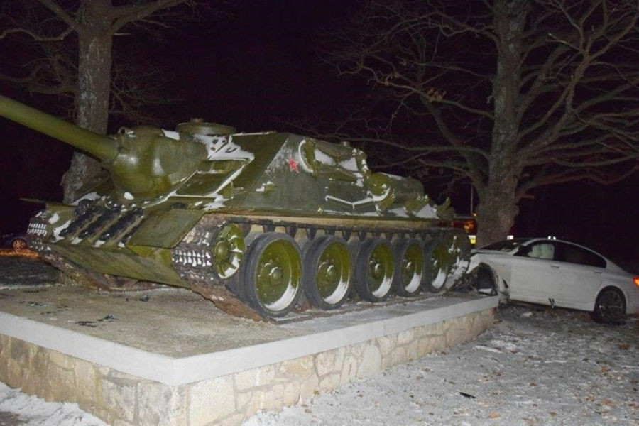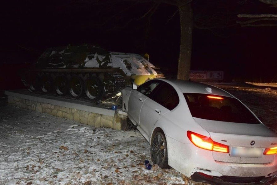 На трассе недалеко от деревни Кошицки-Клеченов автомобиль BMW столкнулся с мемориальной советской бронемашиной, сообщает портал Barikada со ссылкой на местную полицию.
