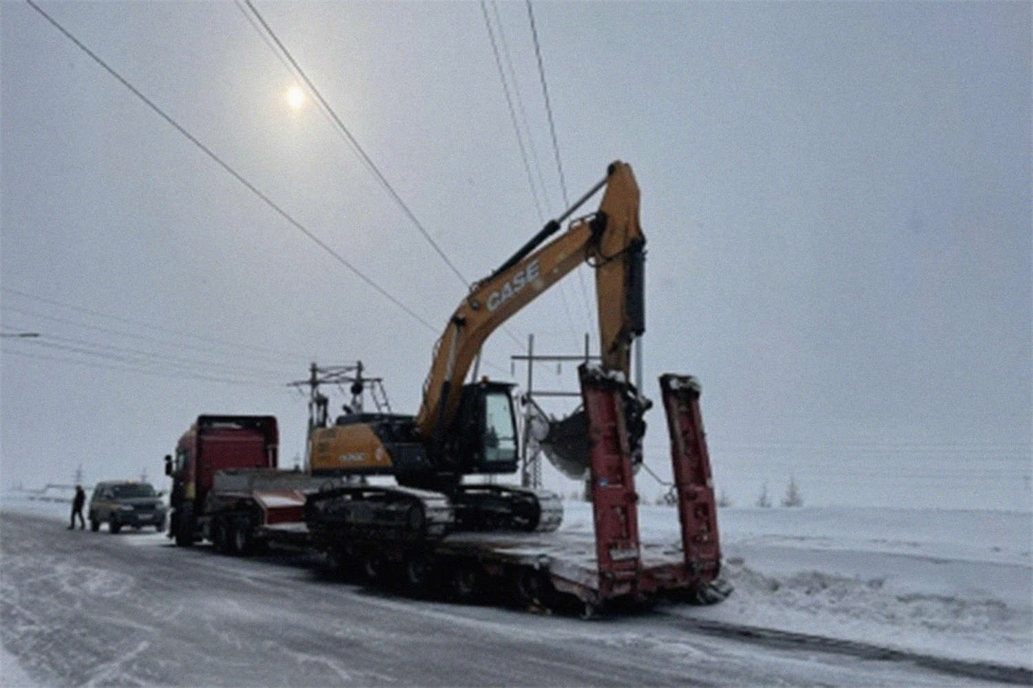 Инцидент произошел в норильском районе Талнах 18 апреля. По предварительным данным, водитель фуры вместе с напарником выполнял работу по перевозке экскаватора и остановился на участке дороги, чтобы спустить технику с трала.