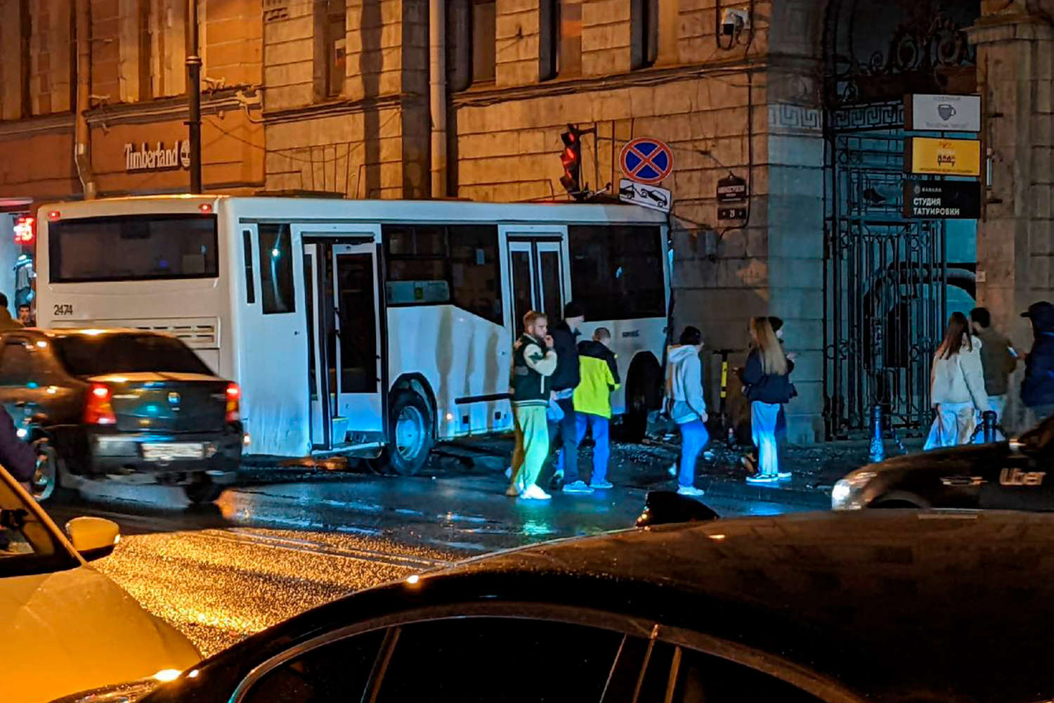 Автобус врезался в стену дома на пересечении Большой Пушкарской и Каменноостровского проспекта в Санкт-Петербурге, видео с ДТП опубликовал Telegram-канал Shot.