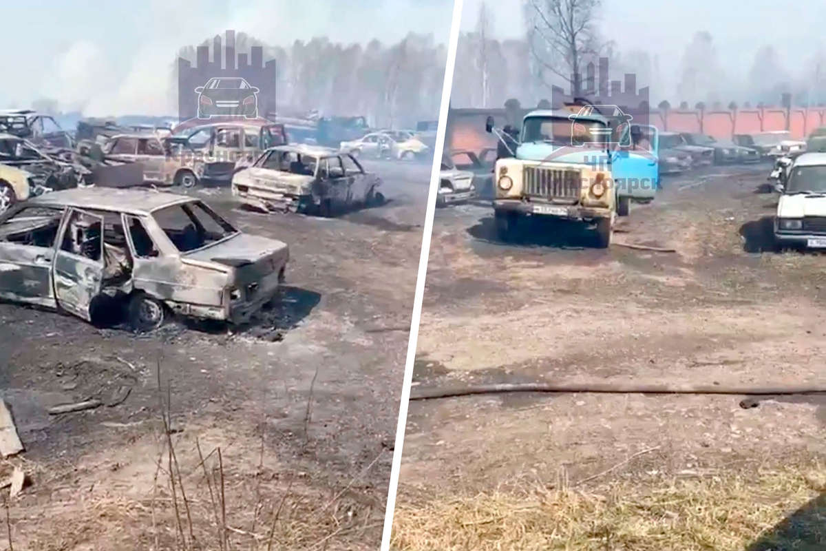 Природный пожар уничтожил все автомобили на штрафстоянке в городе Боготол Красноярского края. Об этом сообщает Telegram-канал «ЧП Красноярск». Видео сняли очевидцы.