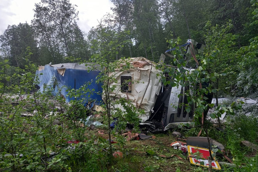 По данным Госавтоинспекции, водитель в результате ДТП погиб. Машина перевозила 20 тонн цемента.