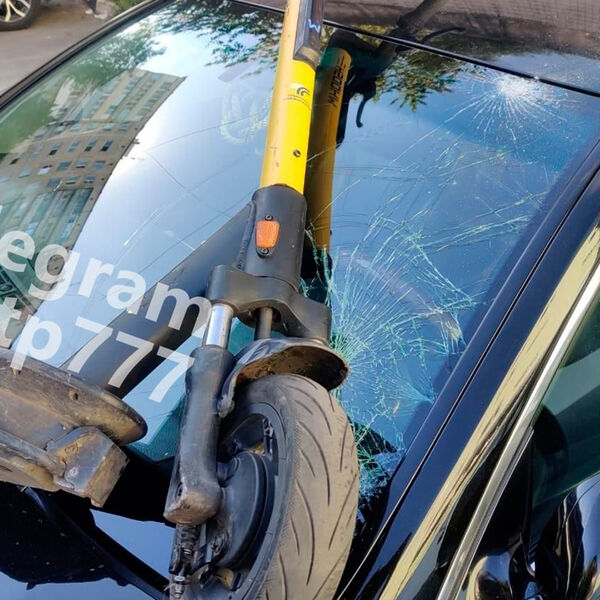 На кадрах видно, как молодой человек с девушкой по очереди катаются на электросамокате. Все действие при этом, происходит на большой площадке, где припаркованы машины. В какой-то момент мужчина кладет электросамокат на асфальт, поднимает его и с силой кидает в лобовое стекло припаркованного черного седана. После этого, немного постояв на месте, пара уходит.