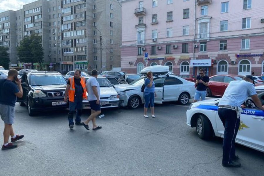 Инцидент произошел на улице Фрунзе. По данным издания, дорожно-транспортное происшествие спровоцировала женщина, управлявшая хетчбэком Skoda. Сначала Skodа врезалась в Nissan Almera, а потом в Lada-2115, который от удара столкнулся с Nissan X-Trail.