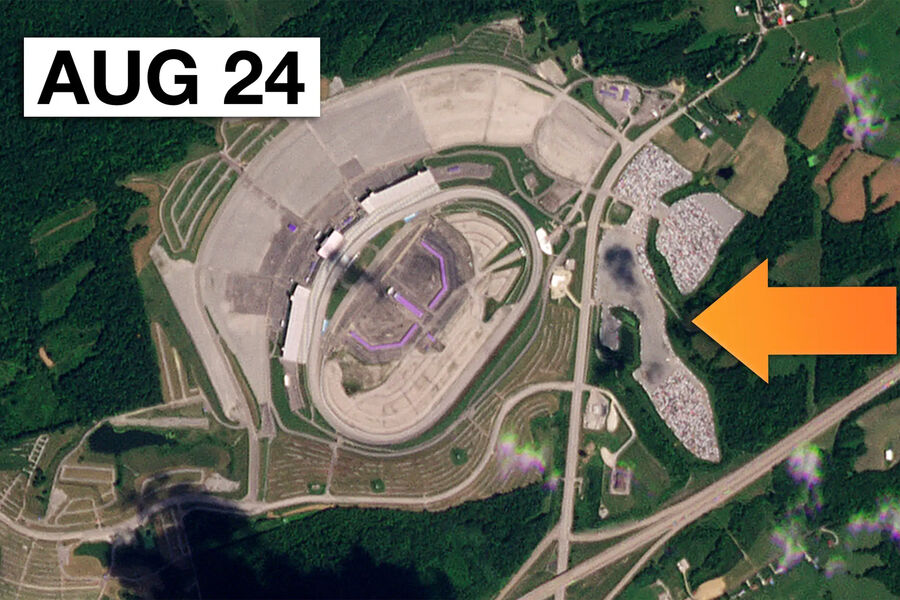 Американский концерн Ford накопил на автодроме Kentucky Speedway большой запас недособранных пикапов, автомобили уже видно из космоса. Об этом сообщает The Drive.