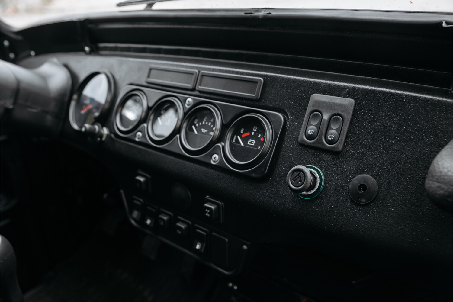В салоне — кресла из экокожи с двойной красной прострочкой, черная обивка потолка, двери с пластиковыми картами-вкладышами и передние кресла с подогревом. Кузов и приборная панель «УАЗ-469» выполнена в окраске «Раптор».