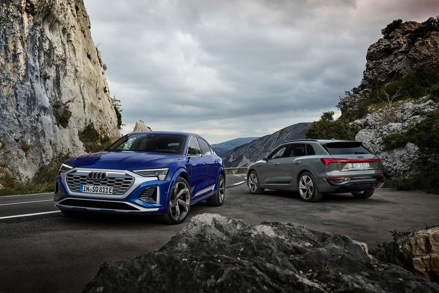 Компания Audi представила электрический кроссовер Q8 e-tron и его купеобразную версию Sportback.