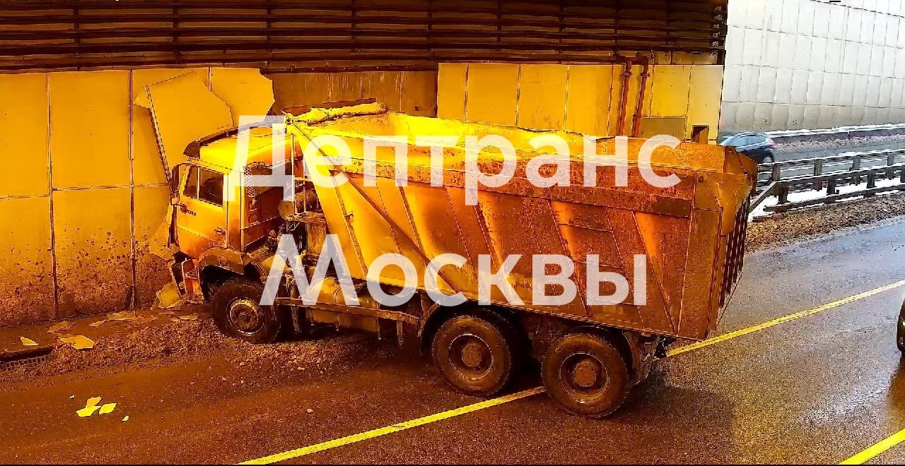Грузовик протаранил стену Лефортовского тоннеля в Москве
