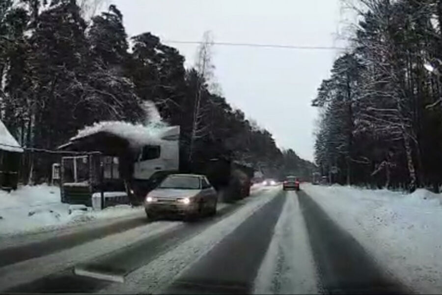 Отмечается, что авария произошла около 10 утра 8 декабря на автомобильной трассе »Петербург - Ручьи». Большегрузый автомобиль въехал в помещение, где дежурят сотрудники погранслужбы. Судя по видео, машина уходила от столкновения с притормозившем на переезде седаном ВАЗ-2110.