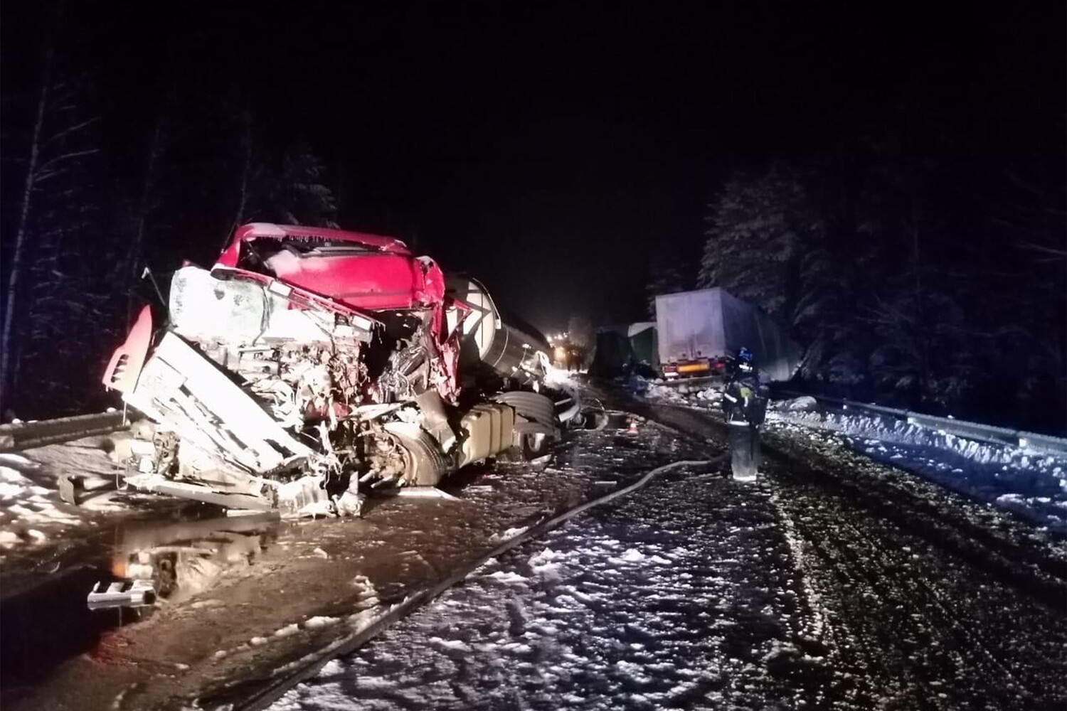 В результате ДТП опрокинулась цистерна, в которой находился аммиак. Чтобы нейтрализовать его пары, пожарные выставили водяную завесу. По данным МЧС, утечка ликвидирована, сообщали в правительстве региона.