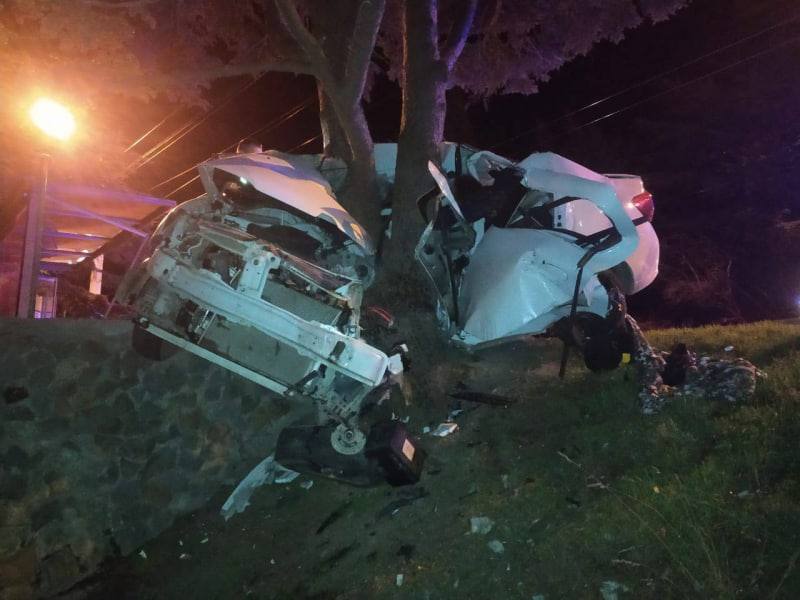Отмечается, что автомобиль врезался в автобусную остановку, после чего отлетел в дерево. Удар был настолько сильный, что кузов машины полностью смяло. Шансов выжить у людей не было.