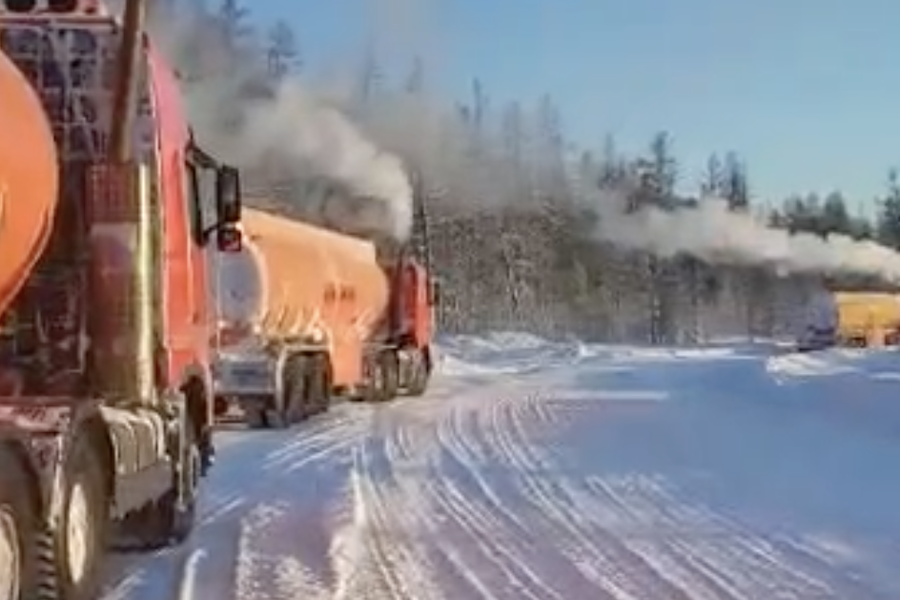 В Нюрбинском районе Якутии у дальнобойщиков лопнули покрышки от мороза, ночью температура воздуха опустилась до -64°C. Об этом рассказали в сообществе «Новости Якутии и Якутска», опубликовав видео от одного из водителей.