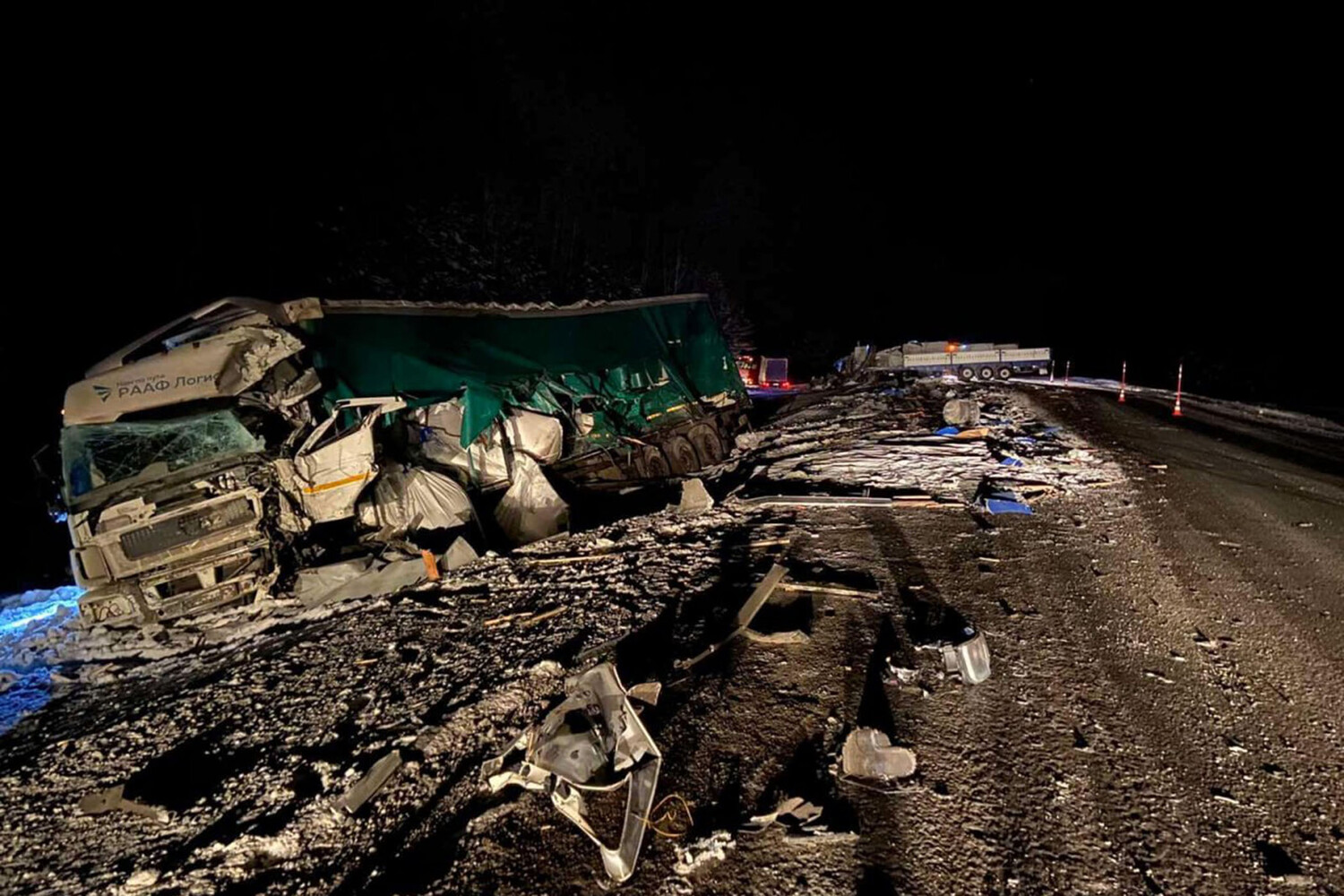 Четыре большегрузных автомобиля разбились на трассе под Тюменью. Об этом сообщает региональная ГИБДД.