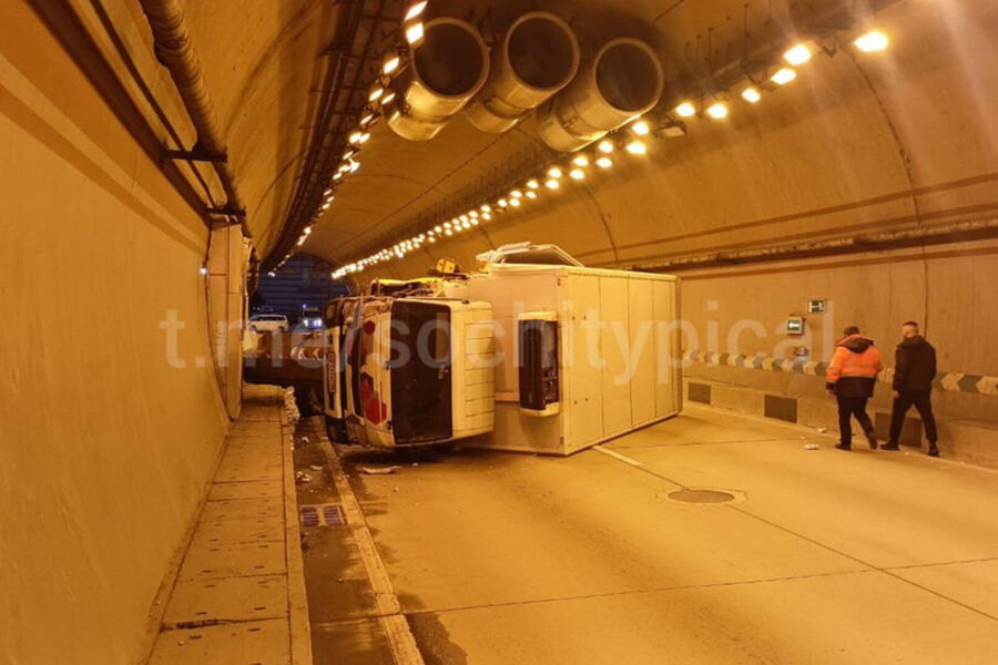 Массовая авария с участием нескольких автомобилей произошла утром 21 января. По сведениям очевидцев, в тоннеле перевернулся грузовик. После этого в него врезались несколько машин, а также экскаватор.