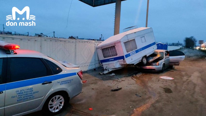 В Ростове легковой автомобиль врезался в полицейский прицеп, в котором проводят медосвидетельствование на алкоголь. Об этом сообщает Telegram-канал Don Mash.