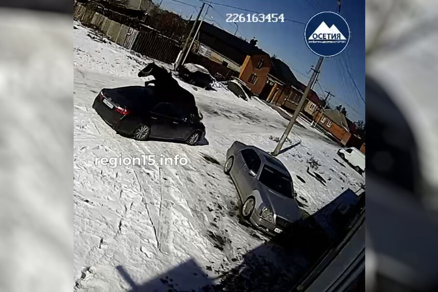 В Северной Осетии конь попытался перепрыгнуть автомобиль и свалился на него. Запись происшествия опубликовал Telegram-канал «Новости Осетии».