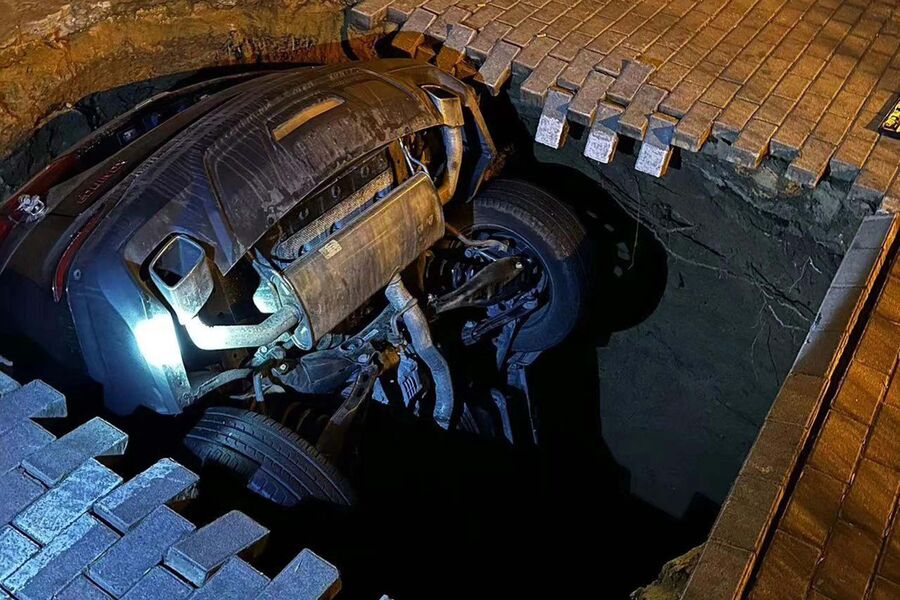 Мужчина успел выпрыгнуть из своей машины за несколько секунд до ее падения в образовавшийся на дороге провал. Об этом инциденте, который произошел в Пекине, сообщает autohome.com.cn.