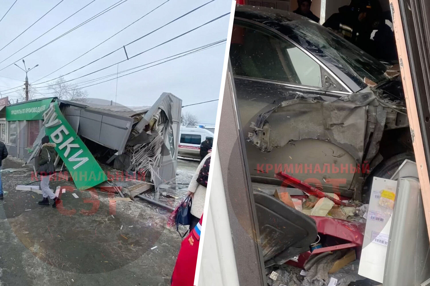 Судя по видео с места происшествия, автомобиль полностью заехал в павильон, сломав его. В ДТП пострадала продавец, ей оказывается медицинская помощь. О том, получила ли травмы водитель автомобиля, неизвестно.