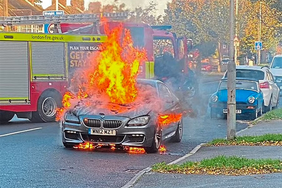 В Великобритании автомобиль BMW, который попал под отзыв из-за риска возгорания, загорелся по пути в автосервис, сообщает Daily Mail.