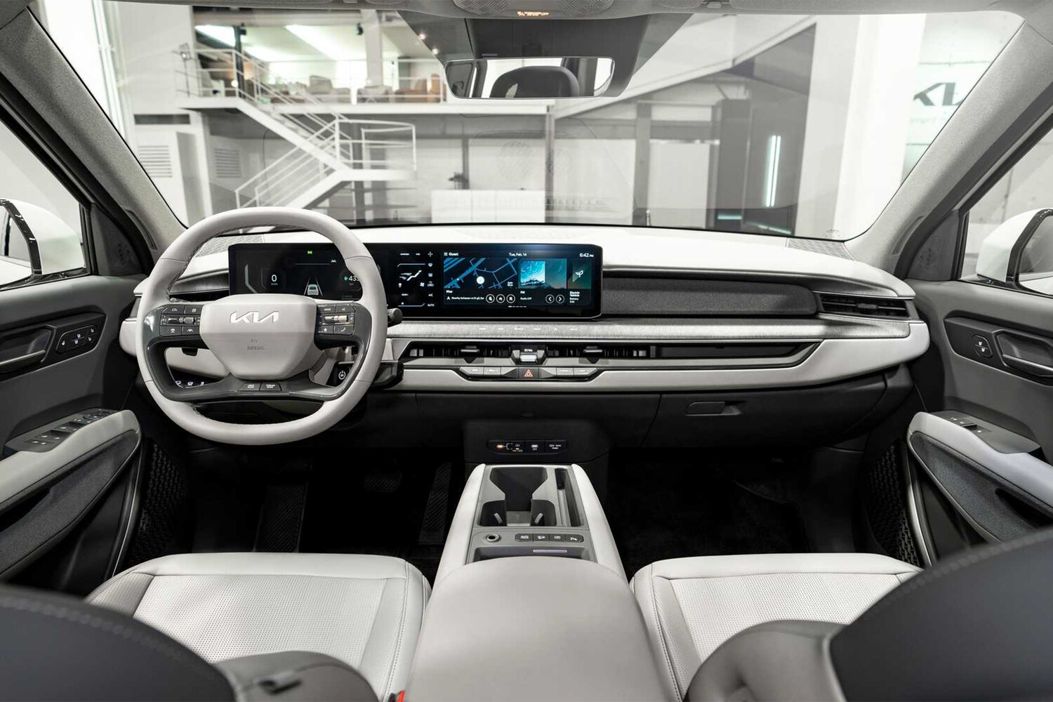 На серийной версии кроссовера раздельные задние кресла можно разворачивать против хода движения, а также поворачивать на 90 градусов для облегчения погрузки и разгрузки. Всего в EV9 предусмотрено три ряда сидений.