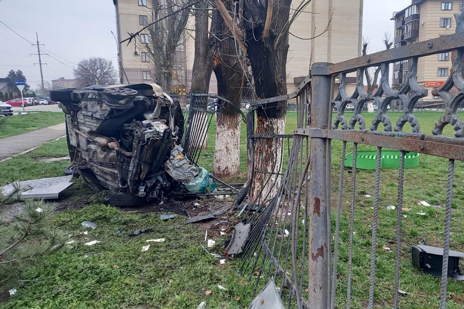«Лихач на автомобиле Toyota на большой скорости не справился с управлением и буквально снес малую архитектурную форму «Твори добро», затем транспортное средство, вращаясь, пролетело дальше. Машина перевернулась на бок и загорелась», — говорится в сообщении.