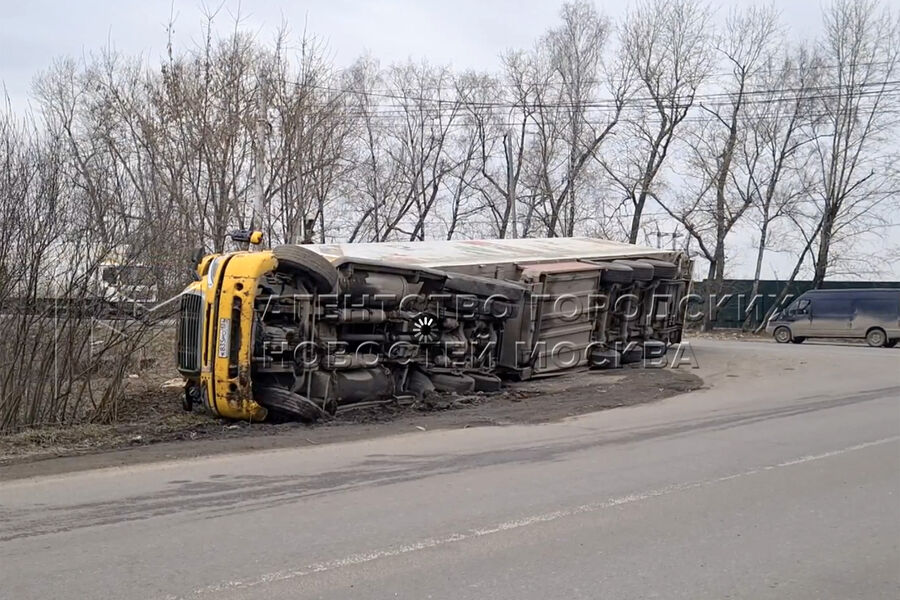 Фура перевернулась на Володарском шоссе в Московской области. Об этом сообщает агентство «Москва».