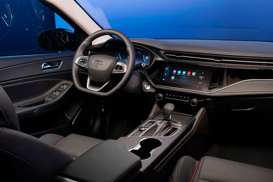 В салоне S5 установлены цифровая приборная панель и центральный дисплей (диагональ экранов — 10,25 дюйма). В перечень опций входят 17-дюймовые диски, датчик дождя, система кругового обзора, беспроводная зарядка, климат-контроль с функцией ионизации воздуха, зимний пакет (обогрев всех сидений, рулевого колеса, лобового стекла и форсунок стеклоомывателя) и аудиосистема с шестью динамиками.