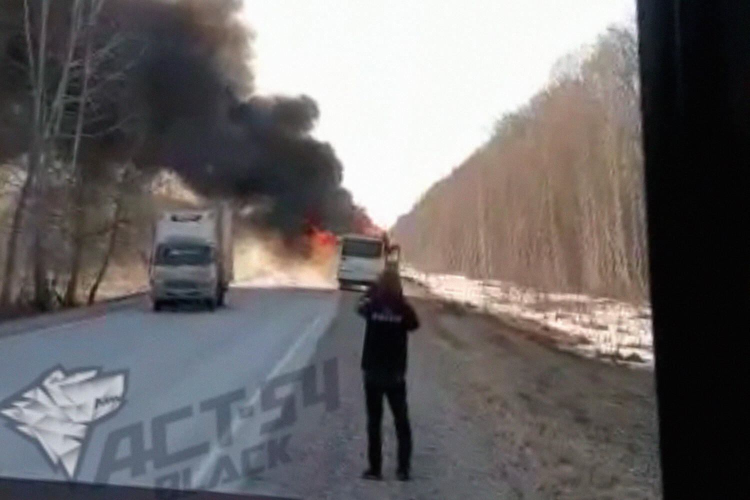 Автобус с пассажирами загорелся под Новосибирском. Об этом сообщает Telegram-канал «АСТ-54 Black».