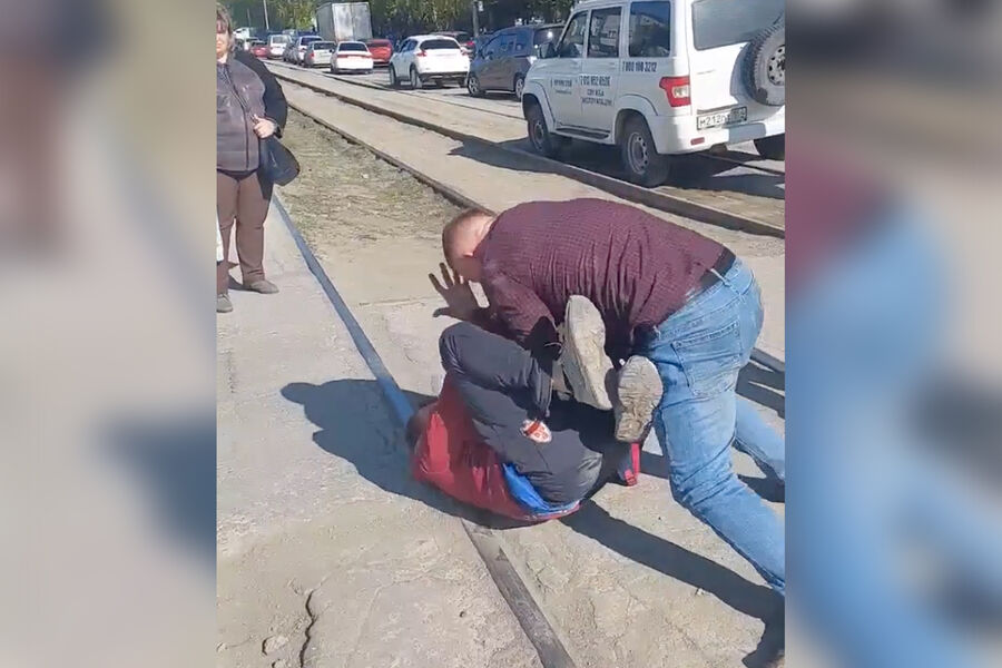 Инцидент произошел на улице Мира. УАЗ ехал по трамвайным путям. После того, как пешеход сделал замечание водителю, тот набросился на него с кулаками и повалил на асфальт.