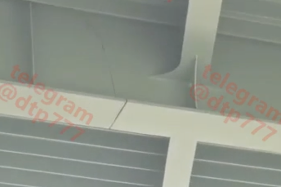 На видео, снятом под мостом, видно, что минимум на одной из несущих продольных стальных балок образовалась поперечная трещина. При этом за кадром слышен звук проезжающего автомобиля. По словам автора видео, дефект образовался в районе съезда в поселок Шарапова Охота.