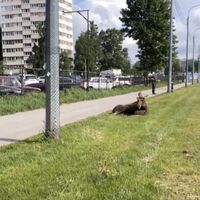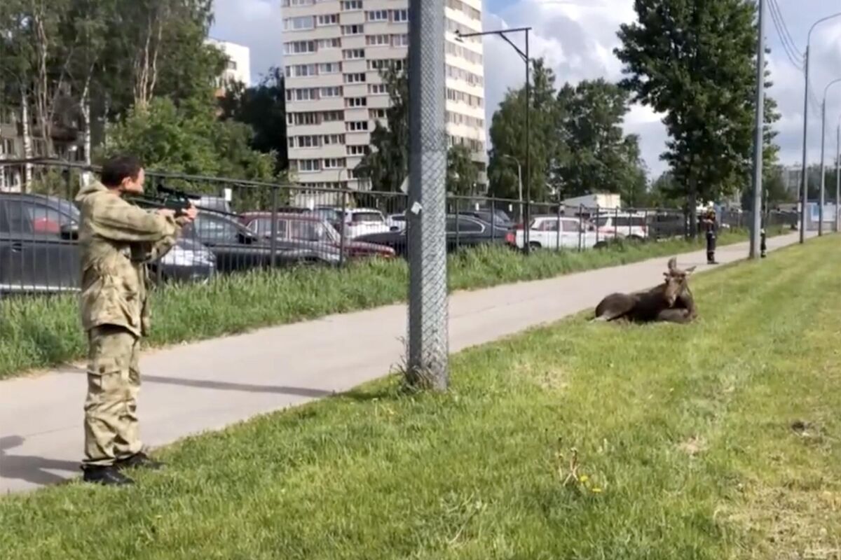 В Санкт-Петербурге спасатели поймали лося, который бегал по городу и попал под машину
