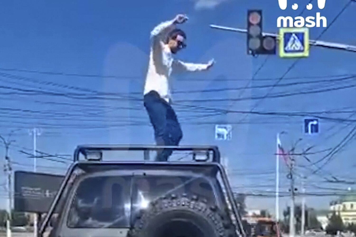 Мужчина станцевал на крыше внедорожника на перекрестке