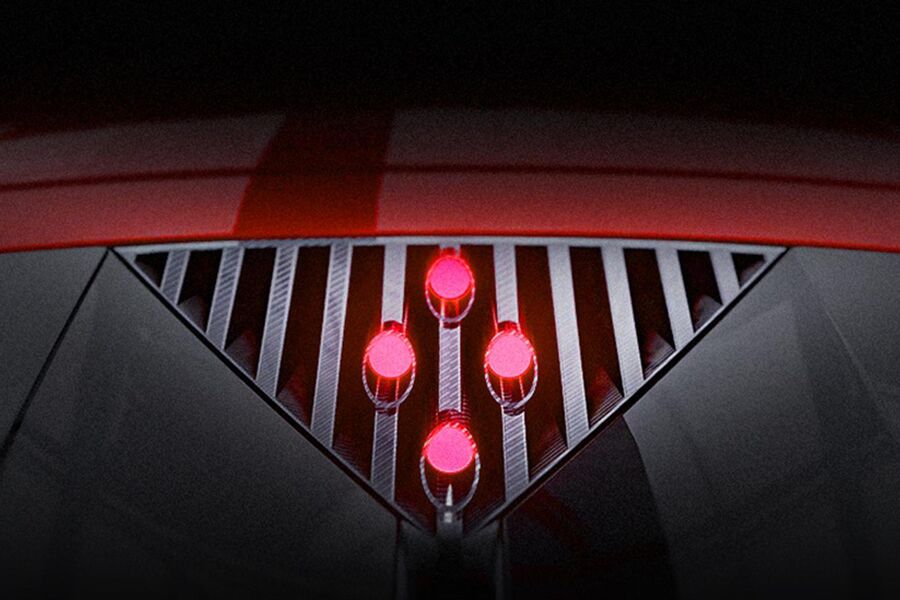 Четыре красных огня на тизерном изображении могут указывать на то, что это фотография задних фонарей автомобиля. Ранее компания публиковала изображение салона машины, на котором можно было увидеть руль.