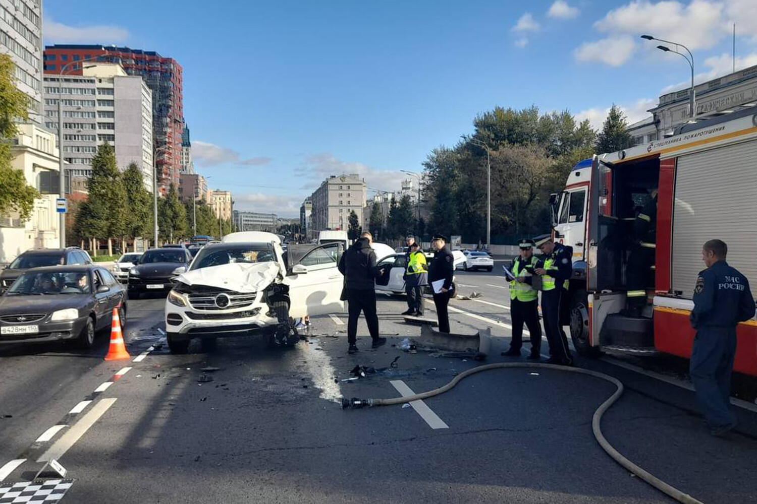 Авария произошла на Садовой-Спасской улице в районе дома 1/2. Как видно на записи, на проезжей части двое мужчин находились рядом с белым автомобилем Volkswagen, позади которого стоял знак аварийной остановки. В легковушку и мужчин на высокой скорости врезался белый кроссовер Mercedes-Benz.