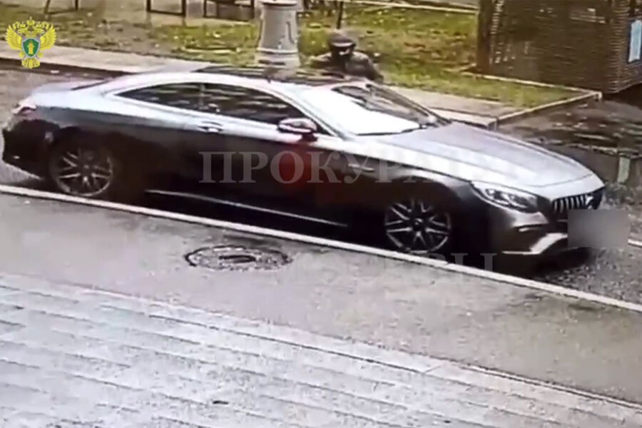 На опубликованном прокуратурой видео видно, как человек в темной куртке, бейсболке и капюшоне подошел к пассажирской двери серого купе Mercedes-Benz, открыл ее и сел в салон. Спустя некоторое время он вышел, открыл багажник и тщательно перебрал находящиеся в нем вещи.