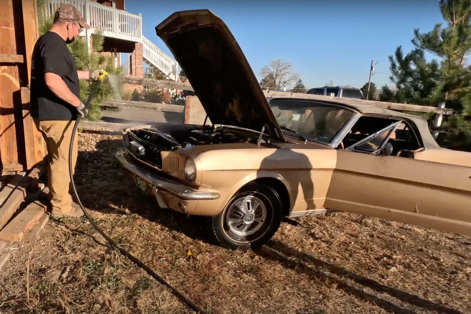 Ford Mustang из сарая оснащен рядным шестицилиндровым двигателем объемом 3,3 литра, который новым развивал 120 л.с. (258 Нм). Как рассказал ведущий канала, для автомобиля, который столько времени провел без движения, Mustang оказался в очень хорошем состоянии и в заводской краске, на кузове почти не было следов коррозии, мягкий верх тоже остался цел. При этом салон кабриолета сильно пострадал от мышей, а пол в салоне оказался в дырах из-за ржавчины. Чтобы вытащить автомобиль из сарая, блогеру пришлось разобрать стену. Автомобиль он надеется восстановить.