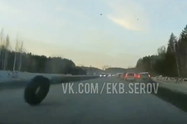 «Как мы видим на кадрах, грузовик (самосвал) двигается со стороны Серова в сторону Екатеринбурга, и на 155-м километре у грузовика на полном ходу отлетает колесо прямо во встречные автомобили. И прилетает в автомобиль Ford», — говорится в публикации.