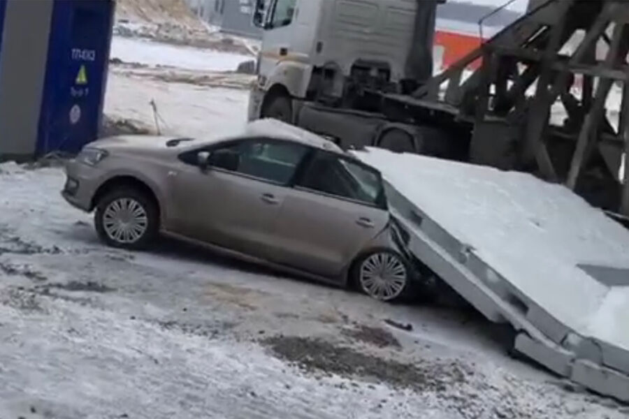 Инцидент произошел утром 8-м микрорайоне Заозерного. Мимо припаркованной Volkswagen проезжал «КамАЗ» с плохо закрепленными бетонными плитами. В результате блоки упали прямо на автомобиль. На тот момент в машине никого не было. В ГИБДД отметили, что если страховка не покроет ущерб, то владелец иномарки может обратиться в суд для его возмещения. Также сотрудники пояснили, что водитель перед началом и во время движения должен контролировать фиксацию груза.