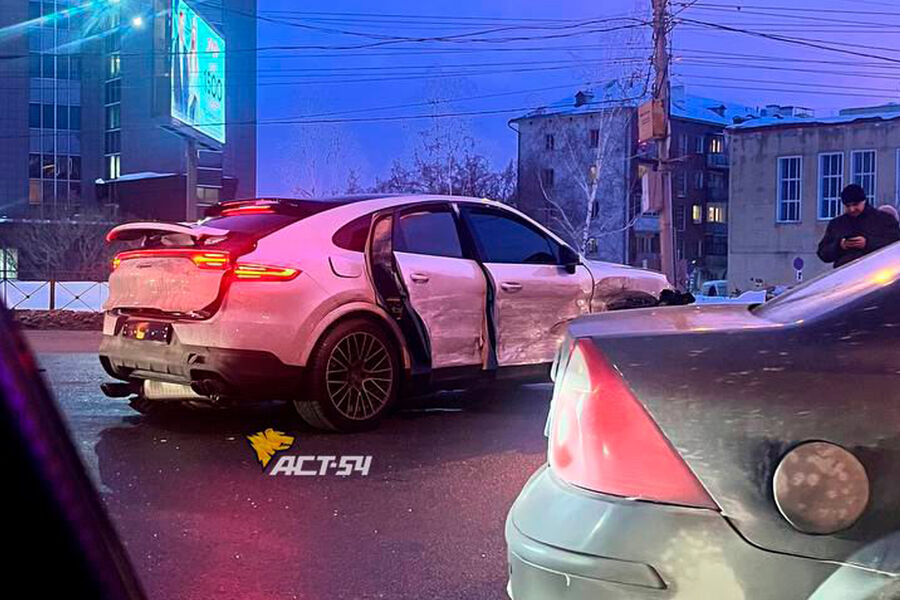 В Новосибирске водитель ВАЗ-2107 врезался в бок Porsche, который протаранил несколько автомобилей на встречной полосе. Об этом сообщает Telegram-канал «АCT-54 Black».