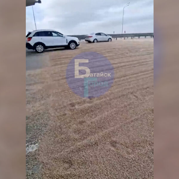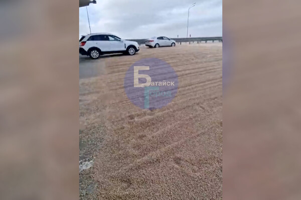 По дороге между Ростовом и Батайском на мосту перевернулась фура, которая перевозила наполнитель для кошачьих туалетов. Кадры произошедшего публикуют очевидцы в соцсетях.