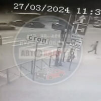 На кадрах не видно само столкновение, однако показано, как пешеходы бегут от летящего в них автобуса.