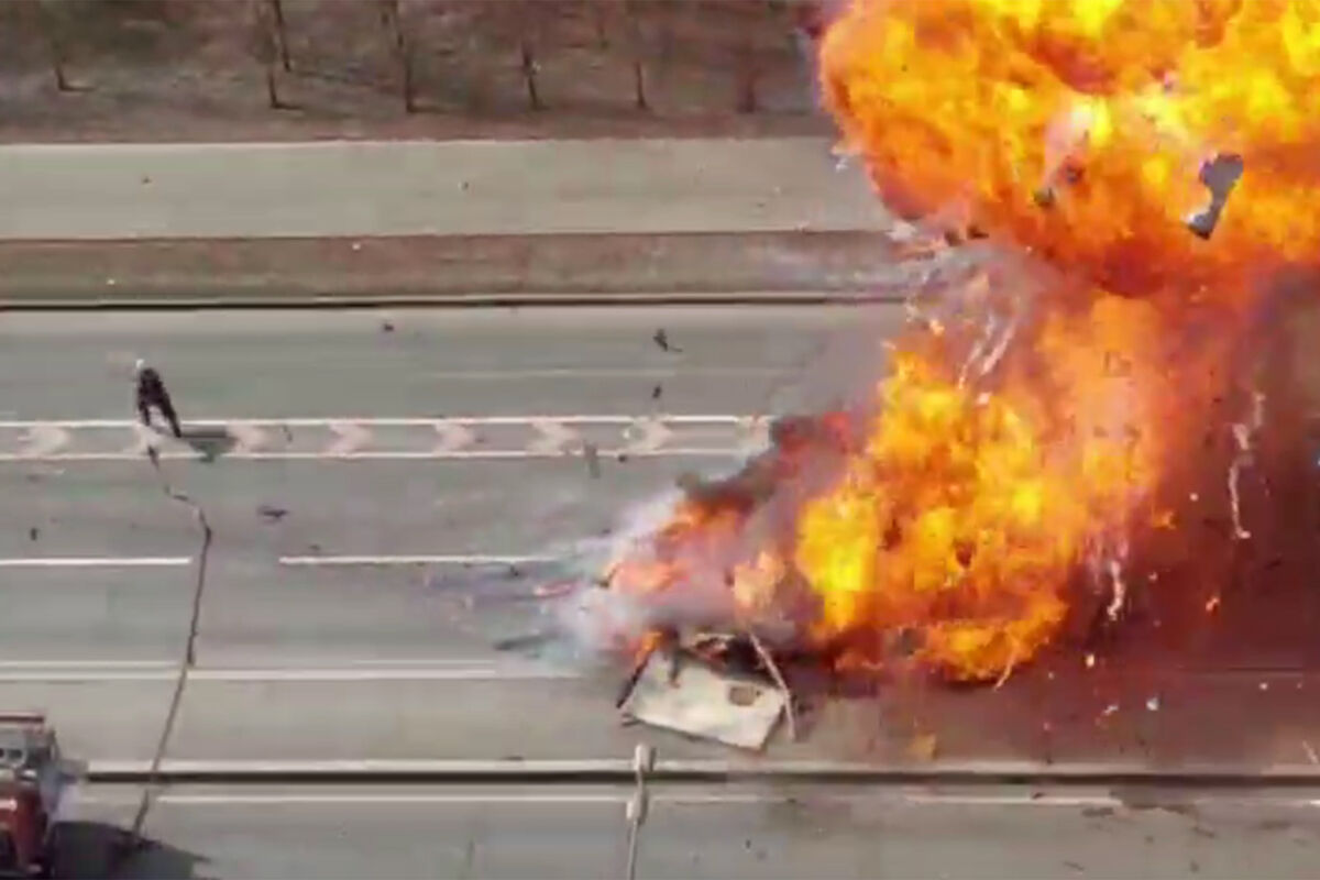 Момент взрыва грузовой «Газели» на западе Москвы попал на видео