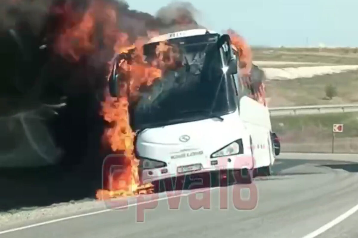 Под Анапой загорелся автобус, в котором находились десятки пассажиров