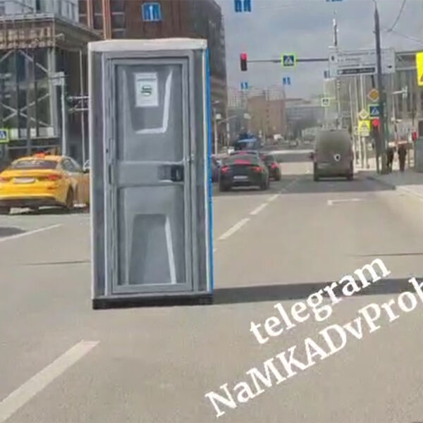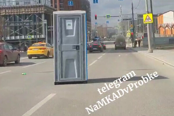Судя по видео, стоявшую на тротуаре туалетную кабину сильный ветер снес на проезжую часть, после чего она стала перестраиваться из ряда в ряд. Кадры сняты недалеко от Третьего транспортного кольца.